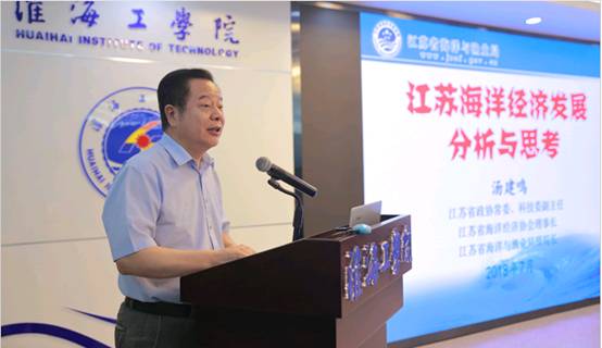 江苏省政协常委、科技委副主任、江苏省海洋经济协会理事长汤建鸣作报告