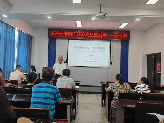 黄建钢教授首先从“中国式现代化”的分析引入,明确现代与海洋时代之间的内在关系,通过“未名—地球—水球”的星球发展三段论,基于中西方社会在海权发展的分析阐述中国加快海洋经济高质量发展缩短海权差距的必要性和紧迫性。接下来,黄教授分别从长三角一体化下的连云港发展以及海洋经济、“长三角一体化发展”新要求、连云港在“长三角一体化”中的地位和作用、连云港海洋经济发展等方面为广大师生做了一场深入浅出、绘声绘色的促进连云港海洋经济高质量发展的学术报告。