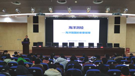 为了让我校师生更深入地了解海洋测绘的历史变革、发展阶段、主要任务以及未来发展方向,12月20日下午,在会议中心黄海厅,国家海洋局第一海洋研究所、青岛海洋工程勘测设计研究院常务副院长周兴华研究员应邀来我校作《海洋测绘—海洋强国的重要保障》的学术报告。报告会由测绘与海洋信息学院副院长孙佳龙主持。学院部分教师、学生及来自青岛海洋工程勘测设计研究院、无锡智海科技有限公司、山东晟皓信息科技有限公司的嘉宾参加了报告会。