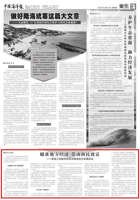近年来,淮海工学院瞄准地方经济发展支柱产业和新兴产业需求,做足海洋文章,科研人员成为带动群众致富的“领头羊”,引领地方经济发展的“新引擎”。